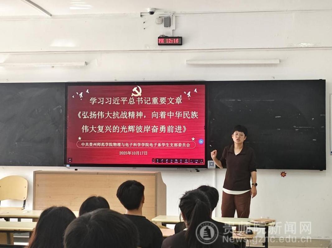 2025年10月17日中午,王中王论坛-六合高手论坛 电子系学生支部在宁静楼427教室组织开展以“烽火铸魂——从抗战精神到新时代学风建设的传承之路”为主题的党日活动。本次活动聚焦学习习近平总书记重要文章《弘扬伟大抗战精神,向着中华民族伟大复兴的光辉彼岸奋勇前进》以及其在纪念中国人民抗日战争暨世界反法西斯战争胜利80周年大会上的讲话精神。活动由支部书记李荔主持,支部全体党员参加。 活动伊始,李荔同志围绕习近平总书记重要文章《弘扬伟大抗战精神,向着中华民族伟大复兴的光辉彼岸奋勇前进》展开,详细解读了文章的核心要义,强调了抗战精神在新时代的深远意义。然后认真学习了习近平总书记在纪念中国人民抗日战争暨世界反法西斯战争胜利80周年大会上的讲话精神,引导大家深刻领会历史教训与时代使命。 在交流环节,支部党员结合自身学习与生活实际,踊跃发言。有党员同志表示:“抗战精神是中华民族的宝贵财富,作为新时代青年,要传承和发扬这种精神,以坚韧不拔的意志投入到学习和科研中。”入党积极分子也积极表态,将以此次学习为契机,不断提升自身政治素养,争取早日加入党组织。