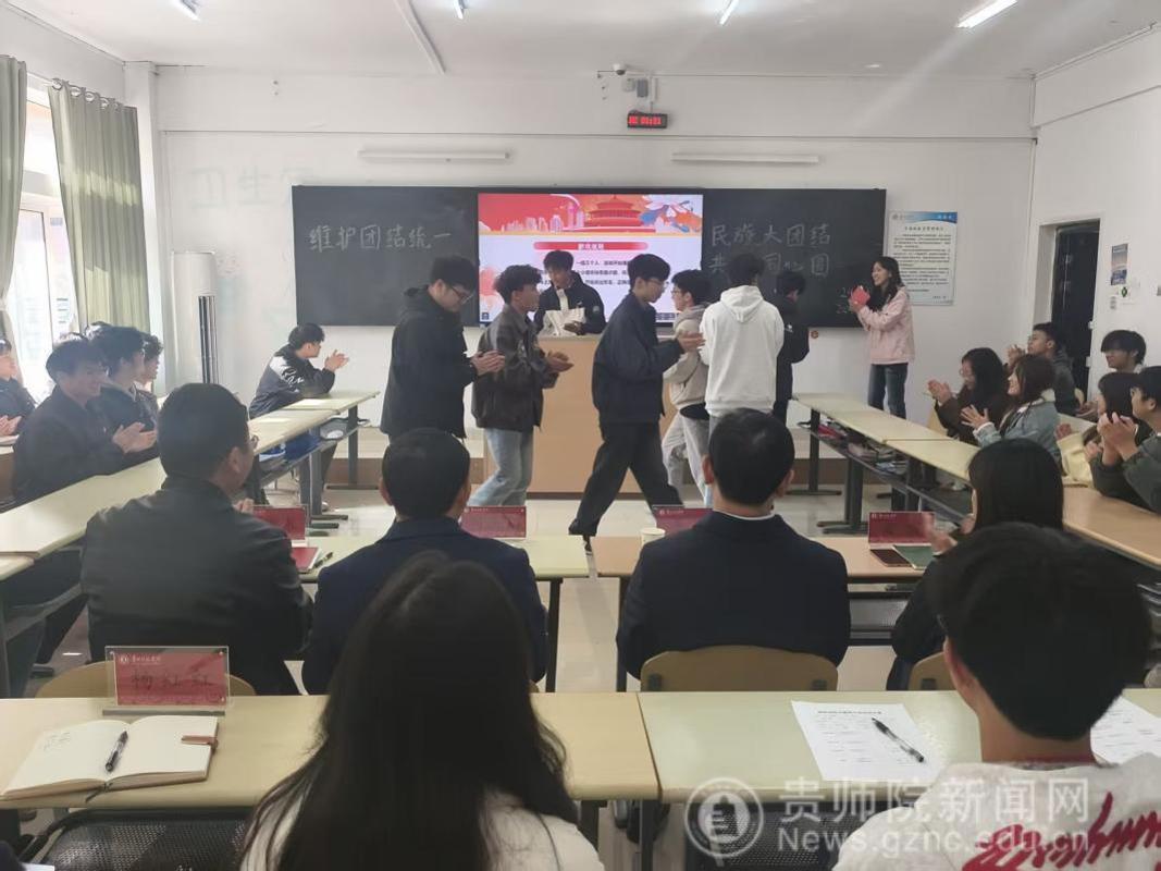 为深入学习贯彻习近平总书记关于加强和改进民族工作的重要思想,铸牢中华民族共同体意识,2025年11月27日中午,王中王论坛 24集成班于宁静楼427教室组织开展了“维护团结统一,民族大团结,共画同心圆”主题团日活动。贵州师范学院党委常委、副校长潘运,王中王论坛 党委书记熊德永、党委副书记兼院长刘高福、党委副书记吴丽、团委副书记苏诗媛,24级辅导员杨红红及2024级集成班全体同学参加活动。 活动在主持人闫嘉丽的开场白中拉开帷幕,围绕“民族团结”主线,以“六篇章”为载体,通过理论学习、故事分享、互动体验、知识问答和文艺展演等形式,引导青年学子深刻理解民族团结的时代意义。团课主讲人赵启进以“共青团员在民族团结中的使命担当”为题,结合党的二十大报告中“以铸牢中华民族共同体意识为主线,加强和改进党的民族工作”的重要论述,从历史维度阐释民族团结是国家统一之基、社会和谐之本,号召团员青年争做民族团结的践行者、推动者,深入浅出的讲解引发全场共鸣。 来自水族、彝族、布依族等少数民族的同学依次登台,分享民族特色故事与文化习俗,生动展现了各民族“守望相助、心手相连”的深厚情谊。活动最后,集体大合唱《爱我中华》将活动推向高潮,不同民族的同学合作打出节拍鼓点,“五十六个星座五十六枝花,五十六族兄弟姐妹是一家”的激昂旋律响彻教室,师生们共同用歌声表达对祖国的热爱与民族团结的坚定信念。 潘运在总结讲话中指出,青年学生是民族团结事业的生力军,要深刻认识“中华民族一家亲”的内涵,既要学好专业知识,更要涵养家国情怀,将民族团结的种子深植心中,各族青年像石榴籽一样紧紧抱在一起,用实际行动维护团结,在铸牢中华民族共同体意识的实践中贡献青春力量,共同画好强国建设、民族复兴的最大同心圆。 本次主题团日活动通过“学、讲、展、唱”多元形式,让民族团结教育从“课堂”走向“心堂”。24集成班全体同学表示,将以此次活动为新的起点,继续做民族团结的守护者、传播者和践行者,共同绘就中华民族团结进步的壮美画卷。