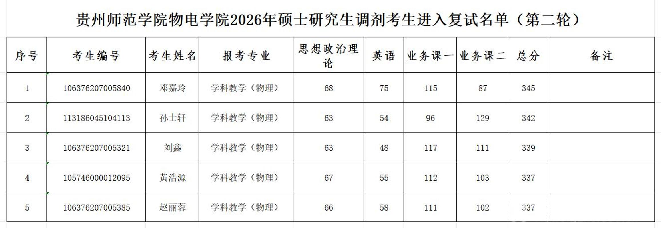 贵州师范学院2026年硕士研究生复试成绩(第二轮)